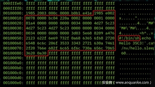 结合以上提到的几点,我们可以定位在特定的空白区域来插入数据,而这块区域实际上属于网络配置脚本,将在网络配置时触发。